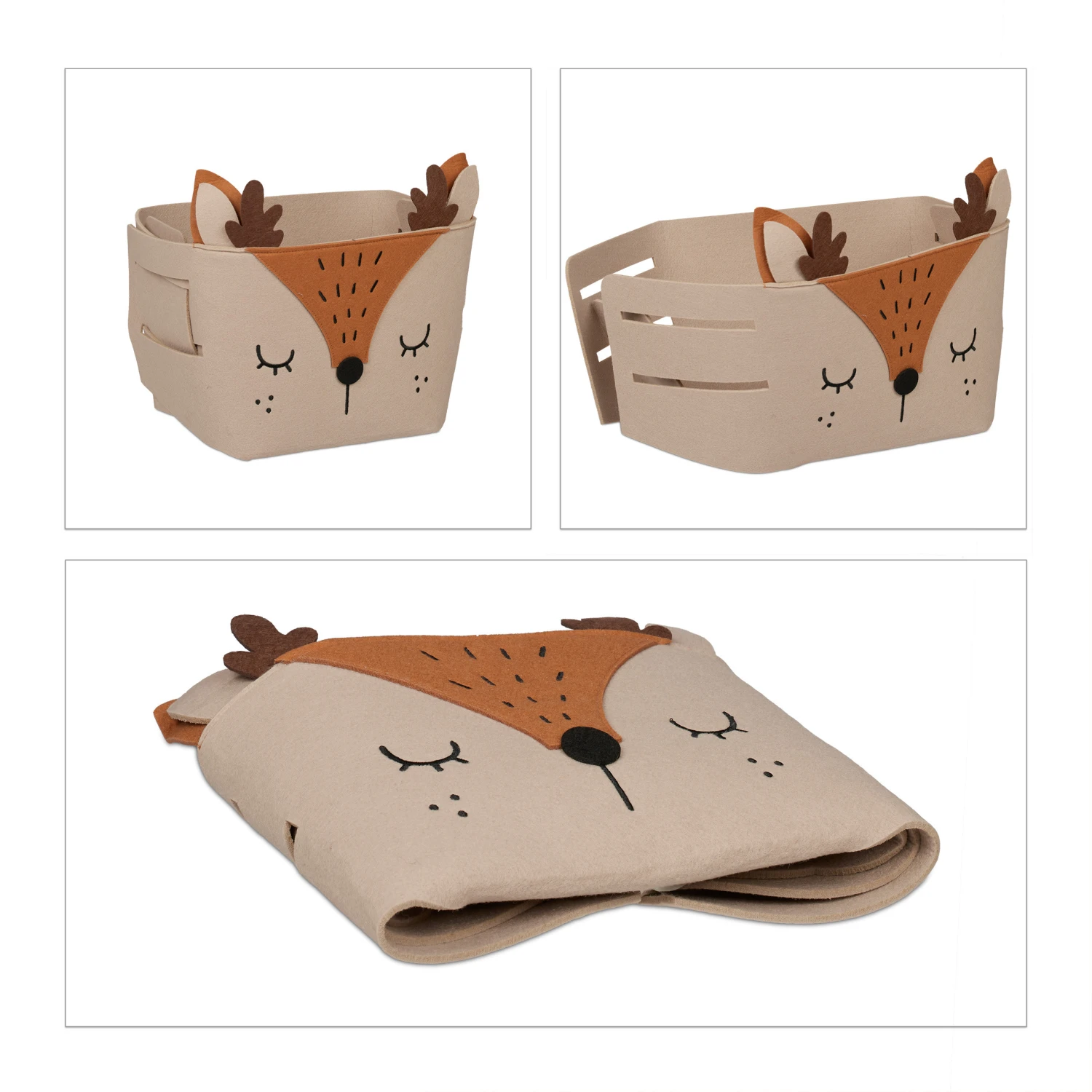 Mit diesem niedlichen Spielkorb fällt Deinen Kleinen das Aufräumen gleich viel leichter und Spielzeug wie Bausteine, Plüschtiere und mehr ist ordentlich aufbewahrt. Dank seiner angenehm weichen Oberfläche eignet sich das Filzkörbchen wunderbar für das Kinder- oder Babyzimmer und macht auch als Aufbewahrungsbox auf der Wickelkommode eine gute Figur. Sollte der Ordnungskorb einmal nicht benötigt werden, lässt er sich im Handumdrehen flach zusammenfalten und platzsparend verstauen.