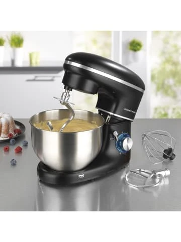 Heute Kuchen, morgen leckeres Sauerteigbrot! Mit der leistungsstarken ‚GOURMETmaxx‘ Küchenmaschine mit sechs Geschwindigkeitsstufen und Turbofunktion sind luftig leichte bis schwerere Teige im Handumdrehen zubereitet. Ganz gleich, ob Sie Teig mischen und kneten oder Sahne aufschlagen möchten – jede Aufgabe wird zuverlässig erledigt! Die kippbare Motoreinheit erleichtert das Auswechseln der Einsätze und sorgt für einen optimalen Bedienkomfort. Mit hochwertigen Details aus Edelstahl macht die ‚GOURMETmaxx‘ Küchenmaschine auch optisch Eindruck! Mit LED-Ring zur Betriebskontrolle. Direktantrieb – geräuscharm und zuverlässig.