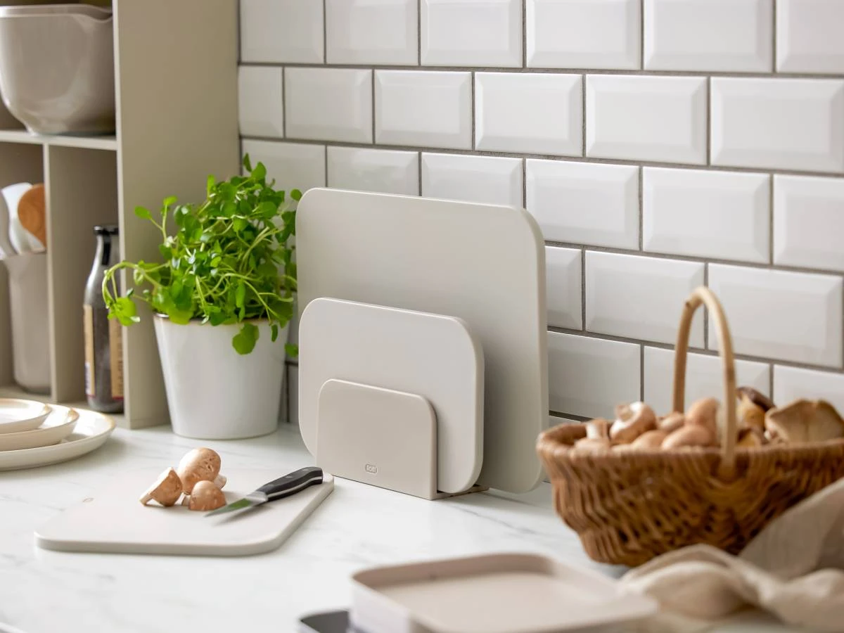 – inkl. funktionaler Halterung - so stehen alle Bretter zusammen, ohne dabei zu viel Platz auf dem Küchentisch einzunehmen