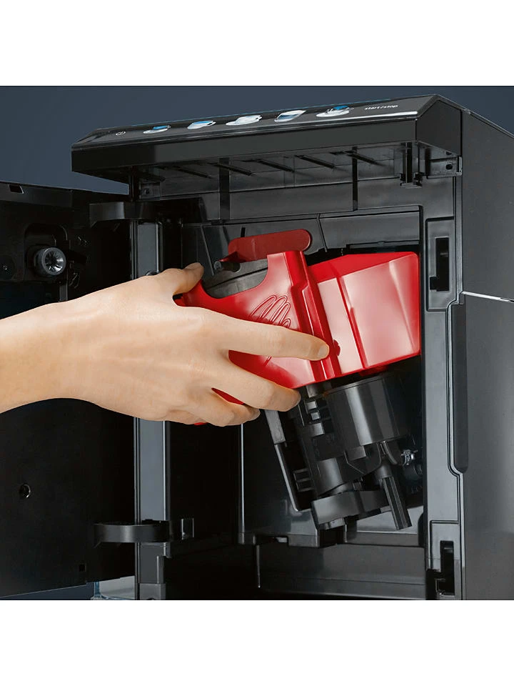 – Tropfschale und Kaffeesatzbehälter entnehmbar und spülmaschinengeeignet