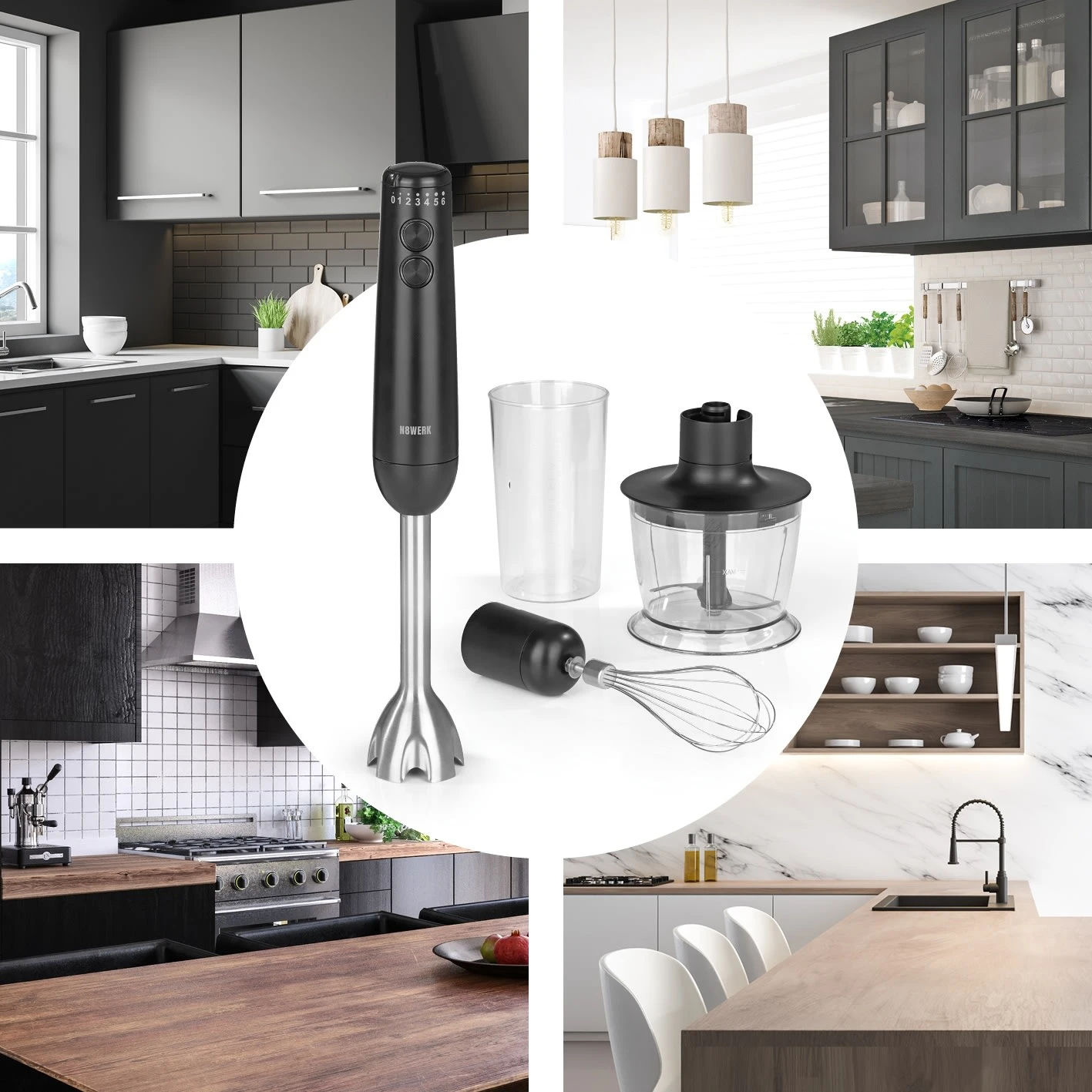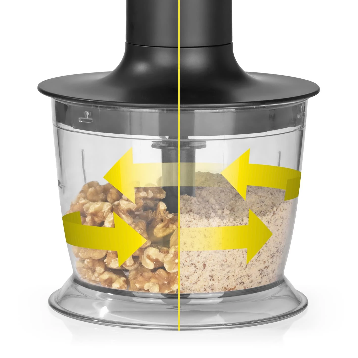 Das N8WERK Stabmixer-Set verfügt über 3 abnehmbare Aufsätze, die je nach deinem Bedarf zum Einsatz kommen: Der Pürierstab-Aufsatz mit 3-fach Edelstahlklingen geht dir bei der Zubereitung von Suppen, Pürees und Babynahrung schnell zur Hand. Der Multizerkleinerer-Aufsatz mit 500 ml-Behälter eignet sich ideal zum Hacken von Nüssen, Knoblauch, Zwiebeln u.v.m.