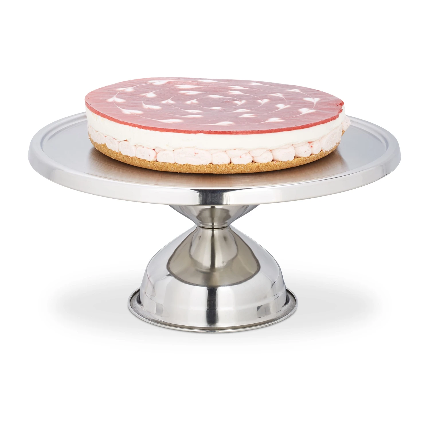 Präsentieren Sie Ihren nächsten Geburtstagskuchen stilvoll und ansprechend auf der Tortenplatte aus glänzendem Edelstahl. Neben kleineren Kuchen, Cupcakes oder Keksen finden dank des großen Durchmessers auch große Torten Platz. Das schlichte Design macht die Servierplatte zu einem echten Multitalent. Auf dem Buffet als Wurst- oder Käseplatte ist sie ebenso geeignet wie zum Anrichten von Obst. Durch den Standfuß der Kuchenplatte steht das Gebäck erhöht und kann so einfach serviert werden.